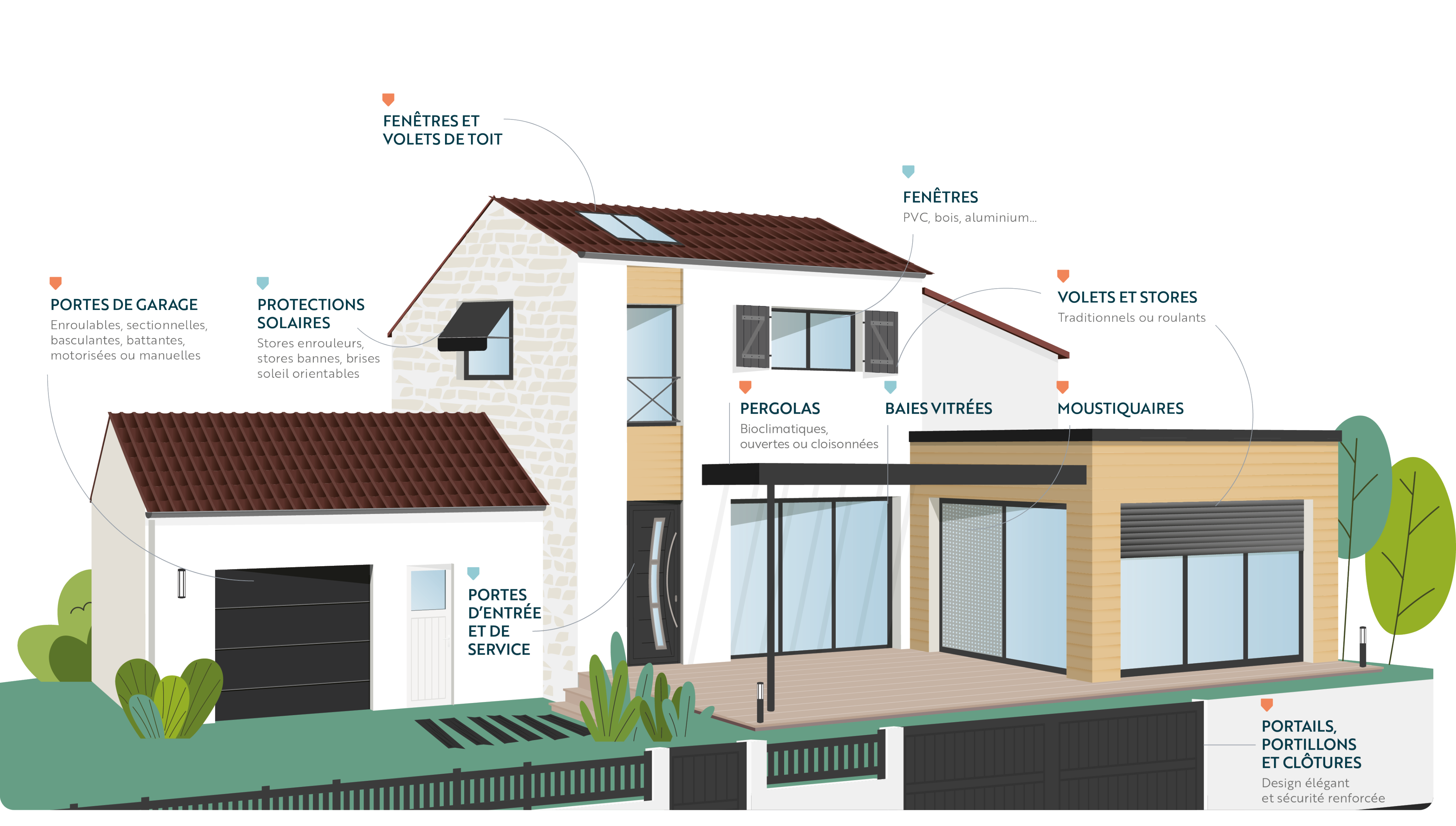 Fenêtres, portes, portails, baies vitrées, pergolas, ...